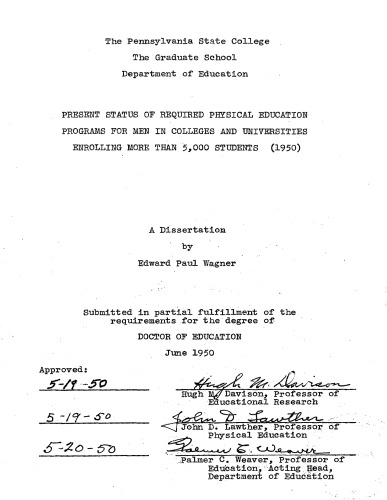 {pdf} A SURVEY OF REQUIRED PHYSICAL EDUCATION PROGRAMS FOR MEN IN COLLEGES AND UNIVERSITIES ENROLLING MORE THAN 5,000 STUDENTS IN 1950 WAGNER, EDWARD PAUL