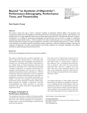 [PDF] Beyond ‘an Aesthetic of Objectivity’. Performance Ethnography, Performance Texts, and Theatricality