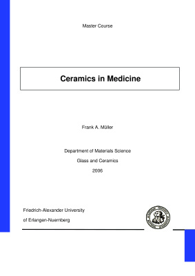 Friedrich-Alexander University of Erlangen-Nuernberg, Department of Materials Science Glass and Ceramics, 2006. ? 89 p.The aim of this course is to introduce students to the field of ceramic materials used in medical applications, so-called bioceramics. After an introduction that summarizes the history, survey and clinical use of bioceramics, the first chapter describes fundamental biological and medical aspects that are relevant for the interdisciplinary approach taken by engineers, biologist, and physicians to improve existing biomaterials. Each of the following chapters focuses on one important class of bioceramics – calcium phosphates, bioactive glasses and glass-eramics, bioinert oxides, and carbon – and covers preparation, properties and applications of these materials.Fundamental biological and medical aspects