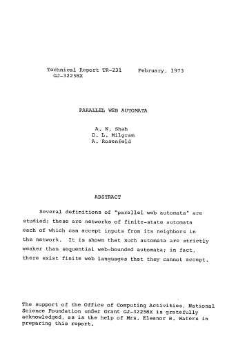 {PDF} Parallel Web Automata Shah, A.N. and Milgram, D.L. and Rosenfeld, A.